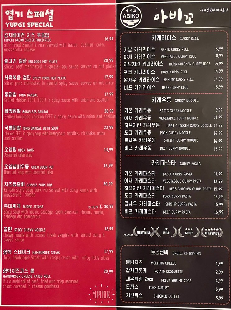 Yupdduk Flushing offers a variety of Korean dishes, with highlights such as the Boneless Dakbal and Budae Jjigae. The Bulgogi Rice and Kimchi Bacon Fried Rice are also popular choices. Customers rave about the flavorful and spicy tteokbokki, praising the tender rice cakes and addictive sauces. The restaurant has a casual 80s vibe, with quick and friendly service. While the portions may be small for some, the quality of the food makes up for it. The ambiance is clean and dim, perfect for a relaxed dining experience. Overall, Yupdduk Flushing is a go-to spot for delicious Korean fare, especially for fans of spicy and flavorful dishes.